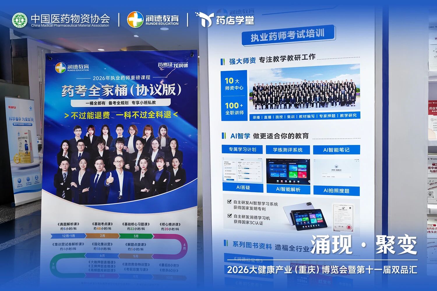 润德教育应邀出席,携执业药师考试培训服务等核心课程产品,以及最新前沿科技产品——润德AI智慧学习系统,亮相展会现场。