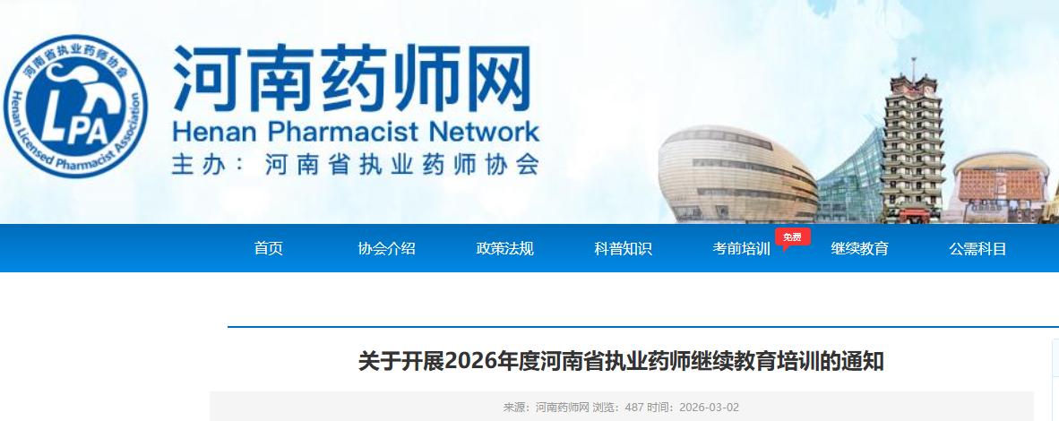 近日,河南药师网发布最新消息《关于开展2026年度河南省执业药师继续教育培训的通知》,明确2025年新拿证执业药师人员也需参加26年继续教育,事关注册评职称,快来一起看一下吧~