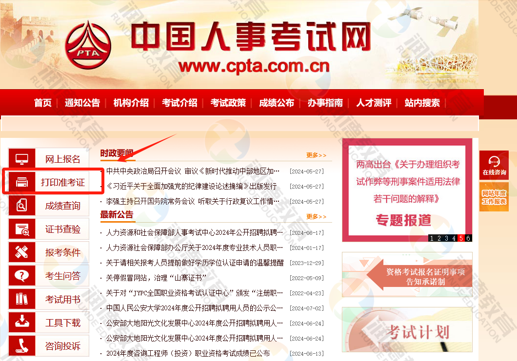 3️⃣登陆宁夏人事考试中心网站“准考证打印”栏目,使用A4纸自行从网上打印准考证。(来源:宁夏人事考试网)