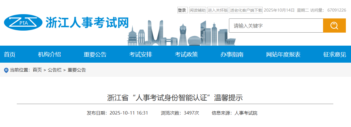 近日,浙江人事考试网发布重要通知《浙江省“人事考试身份智能认证”温馨提示》,今年执业药师考生入场需要身份核验,仅凭身份证和准考证还无法进入考场,快来看一下怎么回事↓