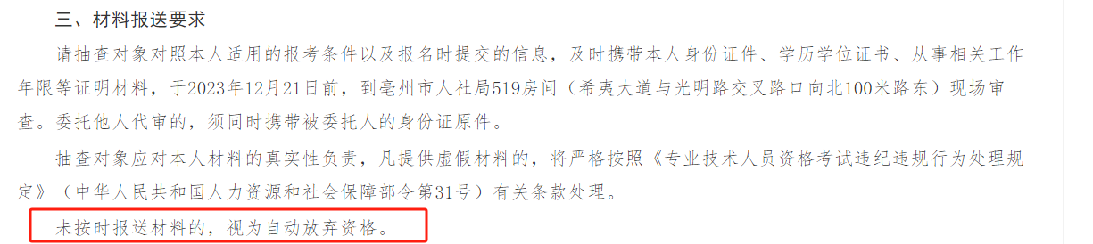 如安徽亳州往年公布执业药师考后复核通告,其中明确“未按时报送材料的,视为自动放弃资格。”