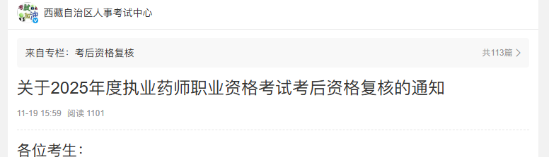 关于2025年度执业药师职业资格考试考后资格复核的通知