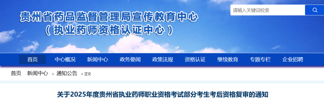 2025年度贵州省执业药师职业资格考试全部科目成绩合格且存在以下情况的人员(具体人员名单见附件):