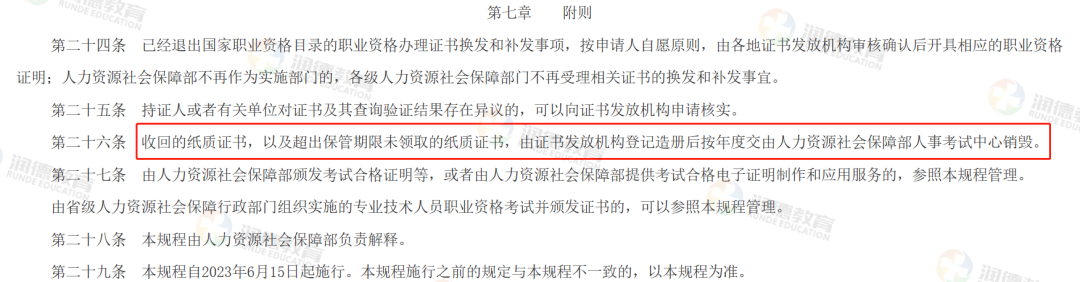 注意:请及时关注官方消息及时领取证书,新规已明确:超出保管期限未领取的纸质证书,由证书发放机构登记造册后按年度交由人力资源社会保障部人事考试中心销毁。