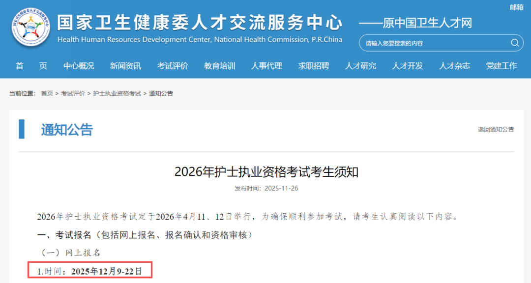 2026年护士执业资格考试报名入口于今日(12月22日24:00)关闭,还没提交报名信息的同学要抓紧时间了哦!