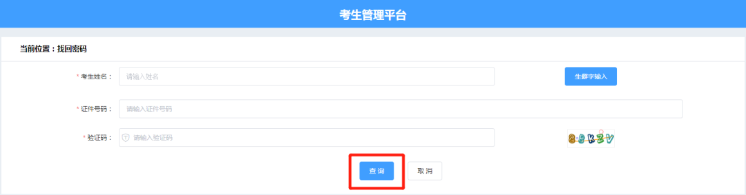 输入考生姓名,证件号码,验证码点击【查询】按钮