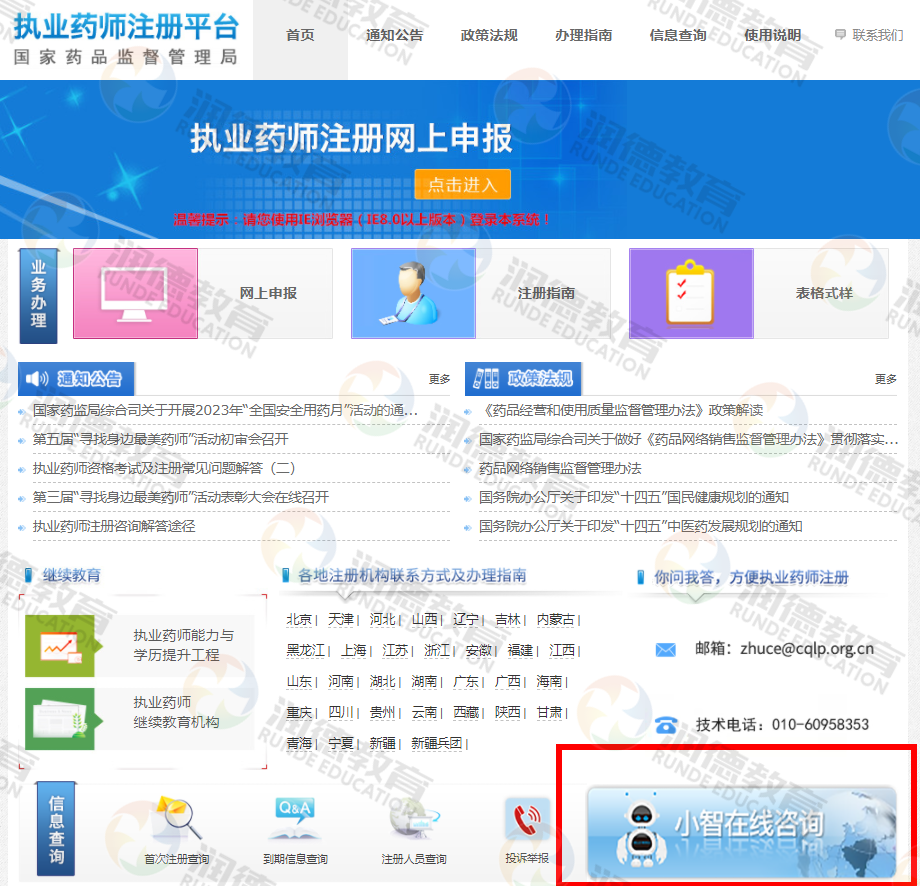大家还可通过执业药师注册平台的【小智在线】机器人,查询执业药师注册常见问题的解决方法。