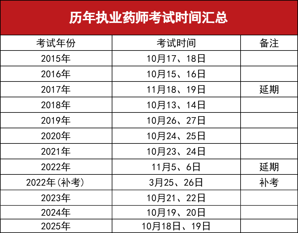 除了2017年和2022年为特殊情况延期,每年执业药师考试一般都会安排在10月份。