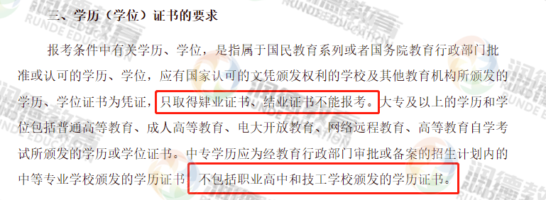 持香港、澳门、台湾地区或者国外高等学校学历或者学位证书报考的,如学历、学位证书未经教育部留学服务中心认证,不可报考。