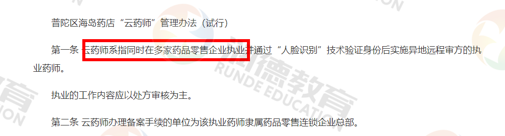 云药师系指同时在多家药品零售企业执业并通过“人脸识别”技术验证身份后实施异地远程审方的执业药师。