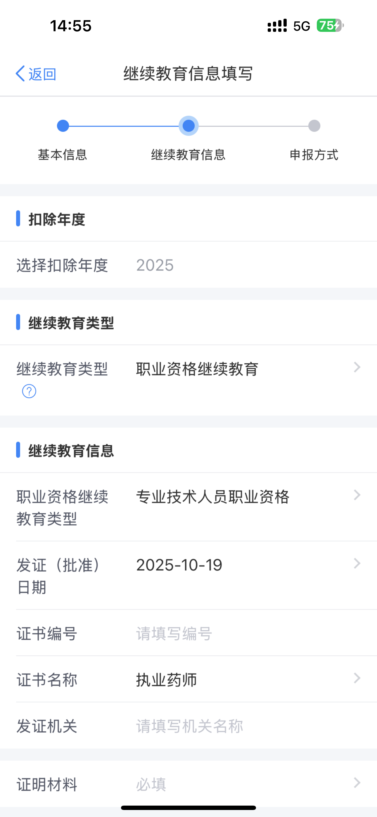 依照要求进行挑选填写(继续教育类型挑选“职业资格继续教育”,继续教育信息挑选“专业技术人员职业资格”,证书称号挑选为“执业药师”);填写完信息点击下一步即可完成申报了。
