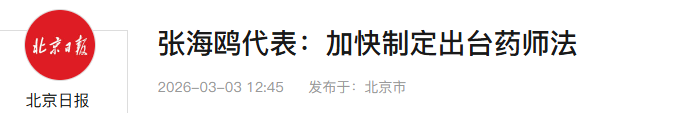 [2] 人民网. 张海鸥代表:加快制定出台药师法,为百姓安全用药筑牢法治屏障. 2026-03