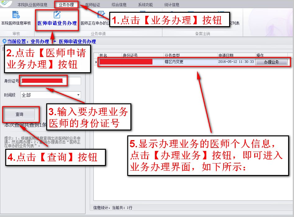 医师申请业务办理步骤如下: