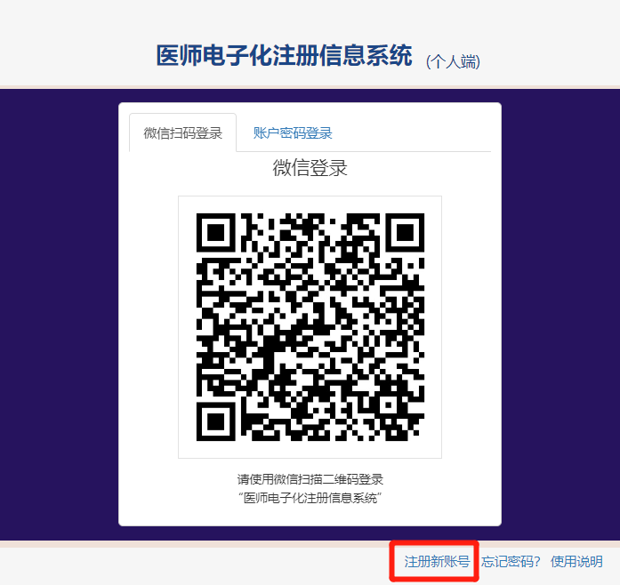 3、在“医师电子化注册信息系统(个人端)”页面,点击登录界面右下角的【注册新账号】。如果是助理升执业可以跳过直接到第三步。