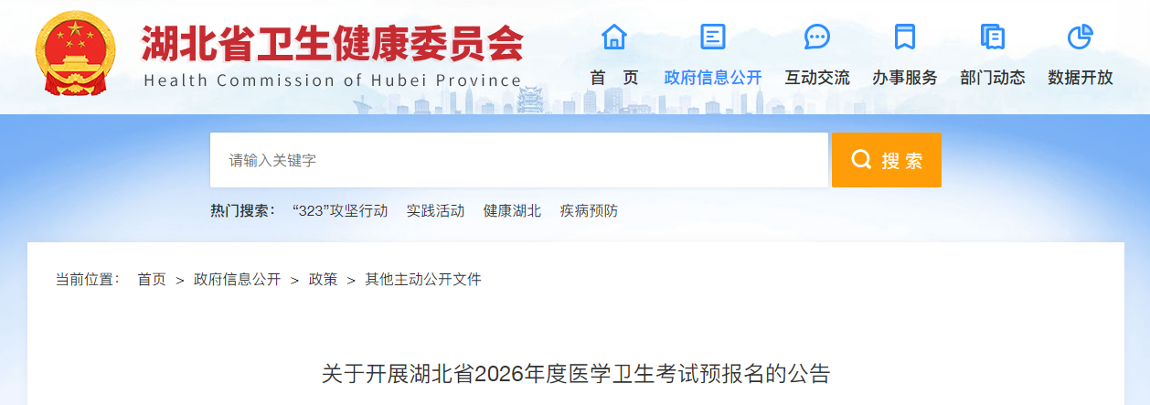 为做好湖北省2026年度卫生专业技术资格考试和医师资格考试(以下简称“医学卫生考试”)报名工作,从即日起开展医学卫生考试预报名工作,现将相关要求通知如下: