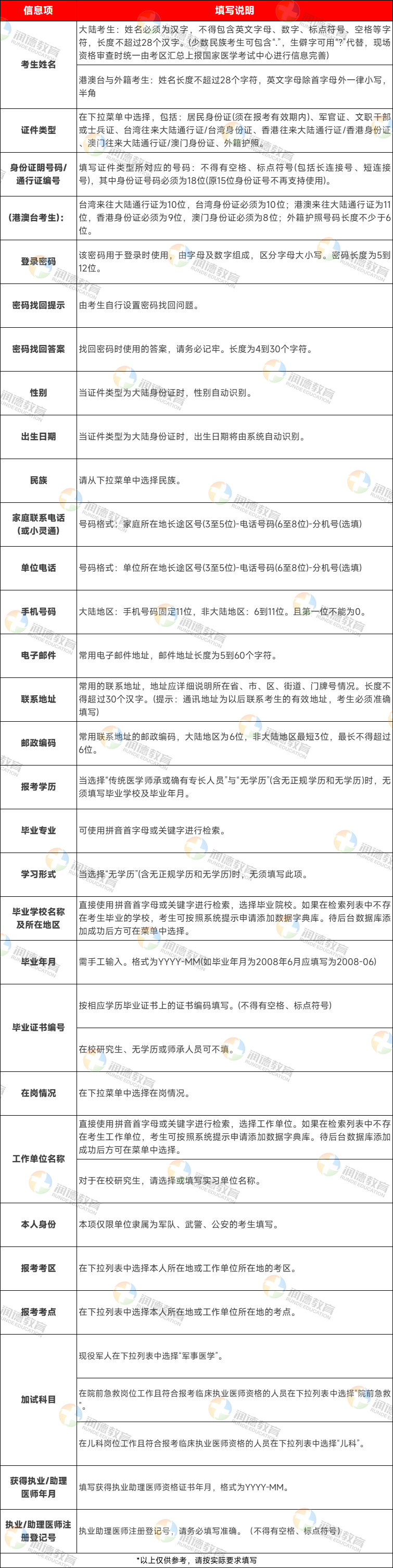 注意:报名表是在国家医学考试网上报名时在线填写的,大家可以参考以上内容进行填写,成功提交报名后,可以将报名表下载打印。