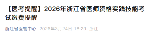 2026年起,浙江省医师资格考试通过“浙江省统一公共支付平台”进行网上缴费和电子发票下载。
