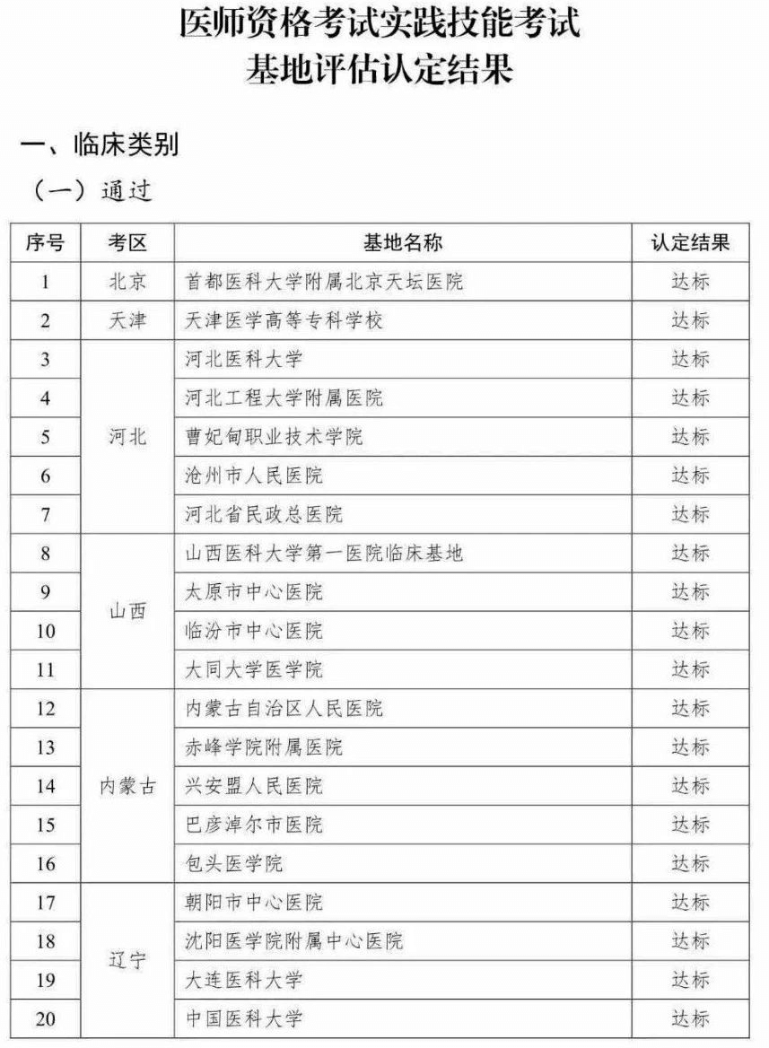 以上为2020年官方公示的国家实践技能考试基地验收表,仅做参考,可与当地卫健委咨询确认。