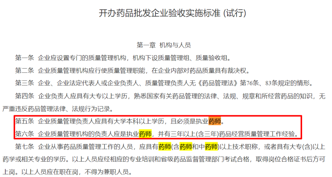 从事药品批发企业需具有依法经过资格认定的药师或者其他药学技术人员,且部分管理人员应是执业药师,比如安徽安庆市宿松县要求: